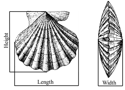 Figure 2 Measurements of smooth scallop (Flexopecten glaber). The artworks were taken from (Fischer et al.11 and modified by the authors.