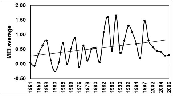 Figure 11 El Niño years with higher frequency and intensity (based on the Multivariate ENSO Index (MEI) and perceptible on coasts of Nayarit .