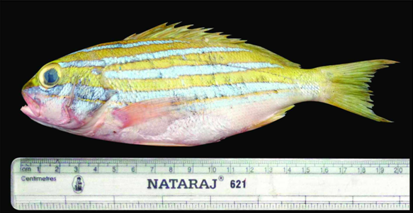 Descriptions, meristic counts and morphometric data in the present study are in good agreement with that of.2,5,13 This species closely resembles Lutjanus bengalensis in body shape and coloration, but is separable from it in having gill rakers 26-28 but in this species having 20 gill rakers. This is the new record from mainland of India. This is the rare species from Visakhapatnam coastal waters. This is the IUCN Red list of threatened species.1 Locally called as a“Aratikaya”.
