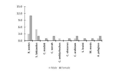 Figure 5 Recorded male and female catch ratio of shark species in which mostly females were found in the Karachi fish harbor.