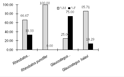 Figure 8 Recorded male and female catch ratio of Guitar fishes belong to the family Rhinobatidae recorded at the Karachi fish harbor.