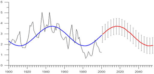 In 2001, Klyashtorin13 was invited as Visiting Scientist at NOAA NMFS Pacific Fisheries Environmental Laboratory in Monterey Bay and he arrived in time to participate in that year’s Pacific Climate Conference = PACLIM Conference. After we were able to talk one-on-one and Sharp had introduced him to many of the region’s climate and fisheries experts, they began discussions of how to get the Old Russian climate science brought into western scientist’s attention, to help bring western science forward. On his return to Russia, Klyashtorin wrote many new papers with several of his mathematically gifted colleagues and gave presentations at several meetings. In 2005, Klyashtorin & Lyubushin15 234 page book on "Cyclic Climate Changes and Fish Productivity" was published. In Russian providing a long overdue reintroduction to the means for coping with the comings and goings of major fisheries populations. Among some hundred graphics, the following three provide useful hints about where we should all be heading by looking forward based on Historical Information (Figure 1-3).