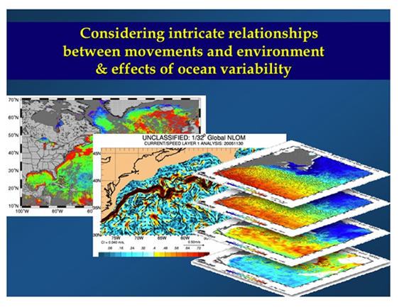 From the tables summarizing the sample numbers by various TOPP tagged species and the very broadly distributed but relatively expensive and slow moving ARGOS floats it is obvious that there are distinct benefits arising from the animal tagging efforts (Figure 6), in sheer numbers of observations and well as insights into what features the various species respond to. All very important information for resource management decision making. Clearly, there is a general need for more empirically based, informed resource management efforts, rather than the outmoded and clearly unsuccessful equilibrium based population modeling that underlies the recent decade’s management failures. Over the recent year or so, some of the needed improvements have been ongoing and we expect major improvements in global ocean data access and considerable regional contributions as the TOPP and related animal based instrumental data sets are entered into the global data base Figure 7. This diagram was provided by Walli,18 who worked within the Hopkins Marine Station Tuna Research Laboratory while earning his PhD at UC Santa Cruz under the guidance of both Dan Costa and Barbara Block. His thesis was a three part visual summary of the decade of satellite tagging of Atlantic bluefin tuna and what was learned. Their migration patterns shift within various stages of their life histories in response to the multiple environmental variables that influences their behavior, from locations of forage regimes, onward to first spawning and beyond. These findings simply defy the present greed based biase approaches used in the management of eastern Atlantic and Mediterranean bluefin tuna fisheries. If we are indeed to ever become empowered with forward looking techniques and technologies, it will only come from acknowledgement of the integrated nature of these complex problems and a serious investment and recuperation of our global monitoring capabilities.