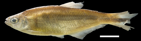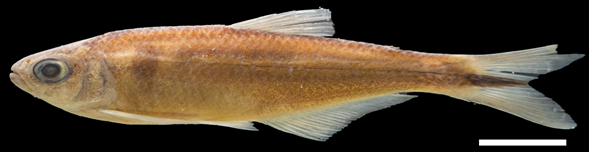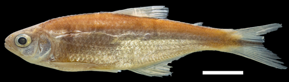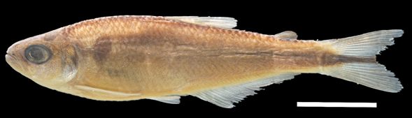 Figure 12 Hemibrycon convencionensis n. sp. Holotype MUSM 37005,73.8 mmSL Peru, Cusco, La Convención, Echarate, Río Parotori, Quebrada Piriabindeni, 28 May 2009. Scale bar =1 cm.