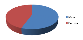 Data presented in Table 1 reveal that 55.56% (35) of the total respondents for the study are males while 44.44% (28) are females (Figure 1).