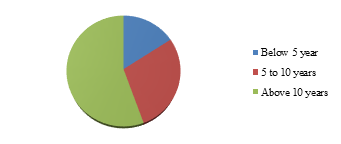 Data presented in Table 2 indicate that 15.87% (10) of the total respondents for the study have professional experiences below 5 years, 28.57% (18) have professional experiences within 5 to 10 years while 55.56% have professional experiences of over 10 years. Thus, the majority of the respondents for this study have over 10 years’ experience in aquaculture and fisheries (Figure 2).