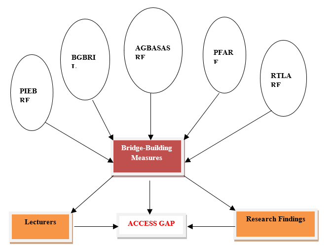The bridge-building measures for lecturers in agricultural education to access and apply research findings in aquaculture and fisheries include inadequate technical know-how, national budgetary and support issues, lack of policy, inadequate infrastructures, poor promotion and information, lack of ICT competence, poor linkage of research institutes to lecturers, time constraints, lack of motivation, poor attitude, inability to interpret some research findings, and lack of subscription of universities to published research findings. Bridge-building measures to access research findings include promotion of innovative and economic benefit research findings, proper funding, retraining of lecturers, provision of ICT gadgets, up-skilling of lecturers' ICT competence, collaboration with technical experts, creating a special agency, strengthening linkage between aquaculture and fishery research institutes to lecturers, capital investment, capacity building, government budgetary allocation, and enactment of policies, bridging the gap between research institutes and lecturers, curriculum integration, funding to provide current aquaculture and fishery facilities, capacity building, regular curriculum review, use of resource persons from department of aquaculture and fisheries for instructional deliver, collaboration efforts of scientists, research institutes, international research organisations and producers, strengthening linkage between aquaculture and fishery research institutes to lecturers, and regular field trips to research institutes.