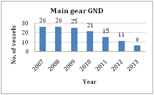 The reason that the fishery is no longer active is that fishermen could not rely on the Atlantic bonito fishery with or without GNDs, because of the limited time of occurrence and unknown migration patterns year by year.