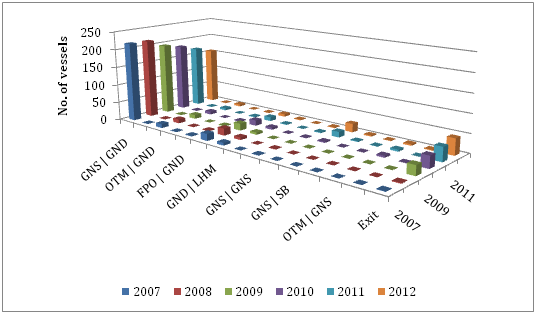 In the national Operational Programmes for Fisheries (2000-2006 and 2007-2013) weren’t included specific provisions for financing GND gear replacement for selectivity reasons. Any modification of vessels participating in driftnet fisheries made without any Community Aid and there was no increase of the available funds for financing the permanent cessation of vessels participating in driftnet fisheries.9,10