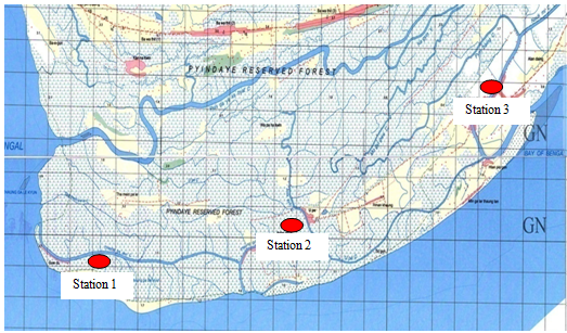 The assessment of economic value of mangrove for the local population from the Southeastern Ayeyarwady Delta has been carried out within the period of May 2015 to March 2016. Three times field surveys has been made. Data collections were made in the villages near mangrove areas. Some of the households who lived in and near the mangrove forests were interviewed. These households were interviewed with questionnaire surveys. The villages included Htaung Gyi Tan (Lat. 15˚43′N and Long. 95˚18ʹE), station (1), Ahshey-Hpyar (Lat. 15˚43′N and Long. 95˚22ʹE), station (2), and Nauk-mee (Lat. 15˚47′N and Long. 95˚28ʹE), station (3), from the Southeastern Ayeyarwady Delta, Myanmar. The households who lived in three villages were categorized into three groups, namely: poor, middle and rich class. 30 interviewers were chosen and utilized to obtain the necessary information required by the communities for planning and decision making. (Figure 1).