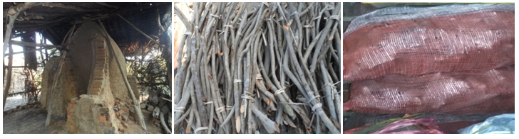 The trunks are cut into 2 feet long and 2 inches in diameter. One bundle of these species was bought by 40kyats. About 500 bundles were placed into kiln until it full of pieces for charcoal production. The kiln is dome shaped structure and make up of bricks, sand and clays. The kiln was then closed and the pieces were burned and baked. After 20 days, charcoal was completely produced and the kiln was opened to let the charcoal cool off. 10 viss of charcoal are put into one sac and sold by 1500kyats. 40 sacs were got from one kiln and income money was 60,000kyats. Two times per one month were made for production of charcoal. The sacs of charcoal had to be transported in Ahshey-Hpyar village and Ahmar Township.