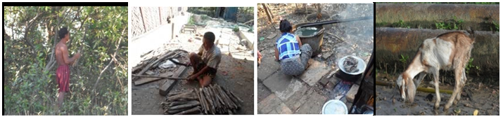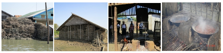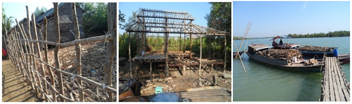 The use of mangrove wood as a source of fuel for household and commercial purposes was fairly widespread. Nearly all families living in mangrove and surrounding areas depended on this ecosystem for firewood. Local people are classified the various mangrove woods for fuel as four classes: first class-Rhizophora, Bruguiera, Ceriops and Heritiera; second class-Sonneratia; third class –Xylocarpous and Aegiceras and fourth class -Avicennia, Sonneratia and Excoecaria. The woods of Avicennia, Heritiera and Excoecaria were used as fuel at every house. 100% of local people were directly used the mangrove forest as firewood in the villages. Local people cut the branches of the mangrove plants, pruning to use as firewood however, they don’t cut clearly the main stem.