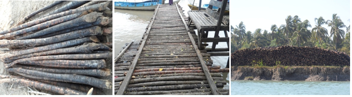 Phoenixpaludosa is one of the representatives of mangrove region of high tide level. The plants are shrubs and the stems were used for frames of walls of the local houses, bridges and as poles. The leaves of Phoenix paludosa were also used as the first layer in roof-thatching and is an important material for local villagers in the vicinity of the mangrove forests. One pole of Phoenix can sellabout150kyats. A worker earns a bare living cut 20 poles of Phoenix plants, and canget 3000kyats per day. The poles were also used to bake in the production of bricks.