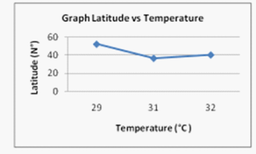 The Figure 4 shows the latitude against temperature of sampling site whereas the latitude is decrease inversely proportional to the temperature at first point. Basically, the temperature is depending on the latitude because of water circulation patterns modify the direct effect of the amount of energy received from the sun.