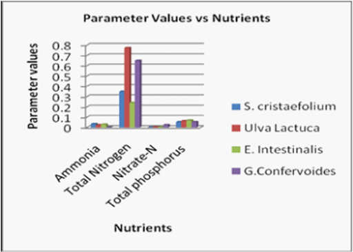 The values of total nitrogen at all sites are highest compare to others because there is more than 65 % of nitrogen in sea water. Setiu Wetland has the highest values of nutrients caused the higher population of macro algae that need more nutrients to survive such as Ulva species.