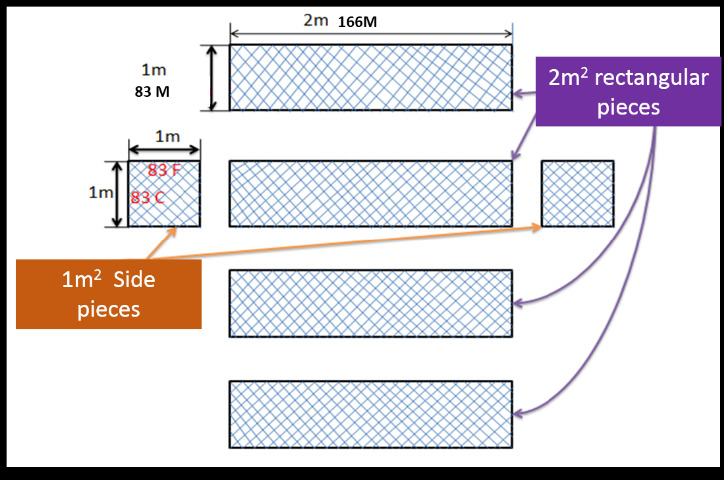 Cutting parts from a 6mm mesh net with the following dimensions Large piece: - Length 2m - Width 1m Small piece: length 1m and width 1m |