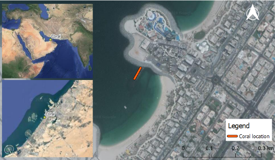 Coral reefs around the globe have been undergoing severe and rapid decline due to human-induced climate change.1,2 Consequently, this exacerbates over-exploitation of key marine species and other anthropogenic stressors, which are driving coral reefs to functional collapse.3 Mega-reclamation projects, such as the three Palm Islands, has put Dubai into the spotlight of tourism.4 However, such activities result in direct removal and/or burial of marine habitats, such as coral reefs, with a poor understanding of the temporal and ecological implications.5,6