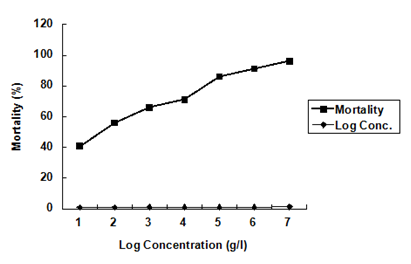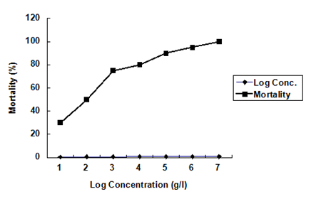 Figure 2 Mortality rate of H. bidorsalis exposed to different concentrations of Urea fertilizers for 96 hours.