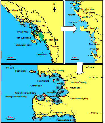 I am indebted to Dr Aung Myat Kyaw Sein, Rector of Mawlamyine University and Dr Mie Mie Sein and Dr San San Aye, Pro-Rectors of Mawlamyine University, for their encouragement and supports in preparing this work. I am very grateful to Dr San Tha Tun, Professor and Head of the Department of Marine Science, Mawlamyine University, for his valuable suggestions and constructive criticisms on this study. I would like to express my sincere thanks to colleagues of Andrew Bay Field Observation Group, Department of Marine Science, Mawlamyine University, for their kindly help me in many ways during field trip. Many thanks go to Daw Lwin Lwin, Retired Lecturer of the Department of Marine Science, Mawlamyine University, for her assistance in preparations of the manuscript. I would like to thank my beloved parents, U Win Maung and Daw Than Than Aye, for their physical, moral and financial supports throughout this study.