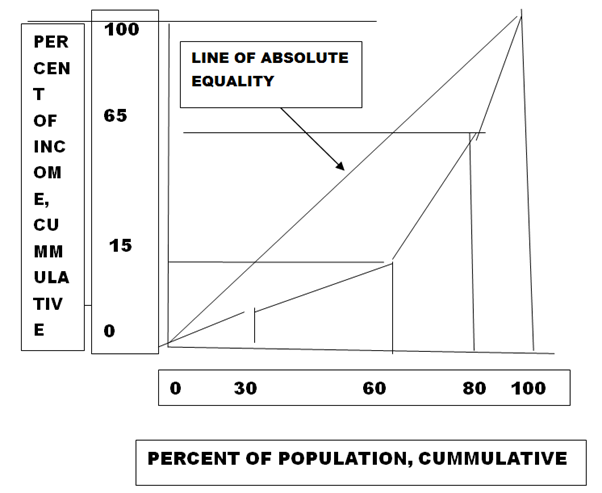 Lorenz curve is relationship between accumulated per capita income per centage distribution versus accumulate percentage of population of gentry 5. A line at 450 shows line of equitable distribution of income generated by technology bases prosperity that will build its sustainability.