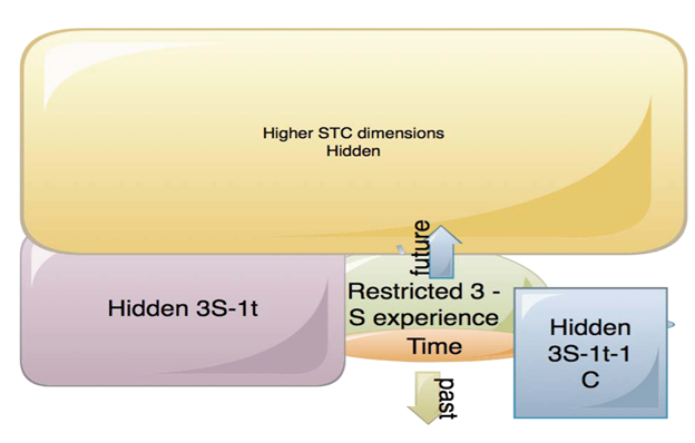 Our overt reality links closely with our experience in restricted 3S-1t. This is what is happening to us and comprehensible. However, much of what is happening to us is hidden—it is covert. This still impacts us and, some philosophies like Kabbalah,44,46,143 use terms like ‘revealed’ and ‘hidden’. Our experience is revealed but almost all of what happens beyond 3S-1t and those parts of 3S-1t reality that we cannot directly apprehend are covert. This concept can be easily developed scientifically.144