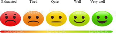 With the theme "Forming a group", the first meeting took place with the aim of presenting the proposal and forming a bond and recognition of the working group, in the first welcome stage. The format and objectives of the action were briefly explained, a leaflet with a check-in of emotions (Figure 1) was handed out and each participant was asked to mark the figure that most represented their state at that moment. After this, the introductory chat began, in which each participant was invited to introduce themselves by answering the question "Who am I?". Participation in all stages of verbal expression was optional. This first moment lasted 10-15 minutes.