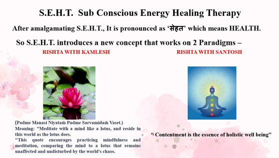 To Conclude, SEHT – Subconscious Energy Healing Therapy is the recent advancement in psycho therapeutic modalities which is an innovative eclectic approach towards developing a holistic management of the couple’s concerns while they are going through infertility counselling and treatment. This is the only therapy which comprehensively encompasses the western and eastern thoughts for the well being of the individual.