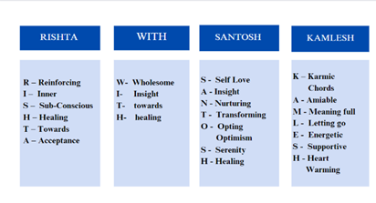 In summary, "R-I-S-H-T-A" in the context of infertility counselling represents the therapeutic process of reinforcing positive aspects, exploring inner emotions, addressing subconscious concerns, facilitating healing, guiding individuals and couples towards acceptance, and ultimately supporting them on their journey to parenthood or finding fulfilment in other ways.