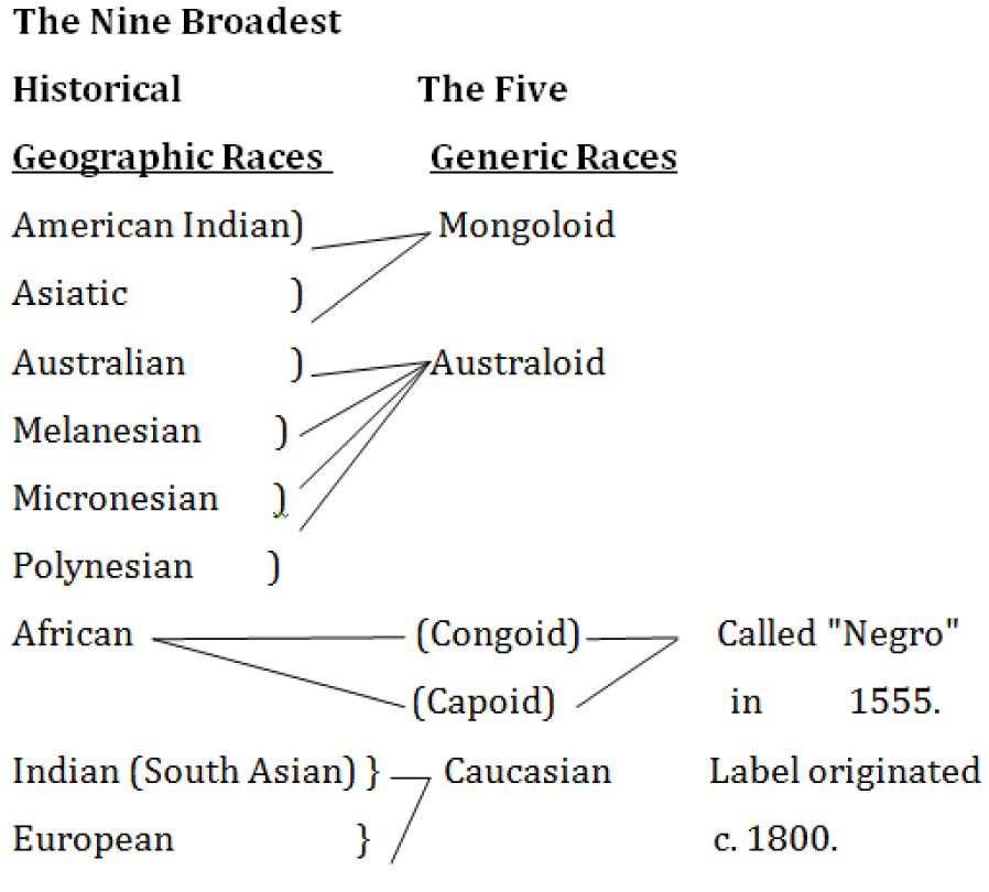 Those who talk about race generally do not know what race is. When people think they are talking about race, they usually are talking about color or slavery, which is to miss the forest for the trees and therefore get nowhere in understanding. A brief course (Comp-ton's Interactive Encyclopedia) on race follows: