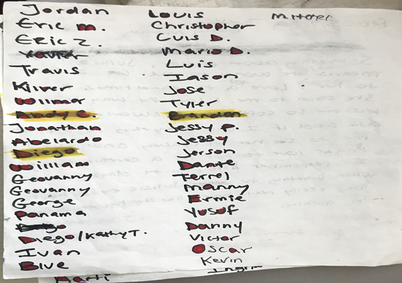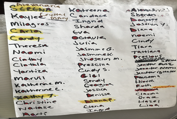 On the day of admission, she reported becoming “Phoenix”who was an angry personality with aggressive tendencies. “Phoenix” was the identity that had homicidal ideations towards her mother. She reported that when her other personality, “Constantine,” emerged, she contacted emergency medical services to seek treatment. It was presumed that she was expressing delusional thoughts due to an acute psychotic process. The initial treatment plan targeted her presumed psychotic symptoms. As the patient had reported previous trial and preference for long acting injectable antipsychotic medications, she was restarted on the same. Paliperidone 234 mg intramuscular (IM) and Paliperidone 156 mg IM injection were given with consent from the patient after a trial on the oral Risperidone 4 mg in two divided doses to assess tolerability. Medications, however, had no significant effect on her as she continued to talk to herself in the third person and identify as a different name after her second week of stay. In addition, the reassessments done to explore improvement revealed that “Constantine” and “Phoenix” were not the only identities controlling and causing her to act aggressively. She reported she had different other selves who sometimes took over her body and talked back to her. Over the course of her inpatient stay, she confirmed a total of 117 personalities, which included 78 females and 39 males. The list of personalities as written by the patient is shown in Figures 1 & Figures 2.