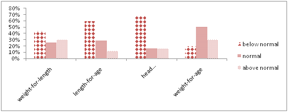 Data was presented using descriptive statistics in the form of frequencies and percentages. Assessment of nutritional status was interpreted in the form of frequency table and bar graphs. Anthropometric measurements were assessed using WHO growth charts.