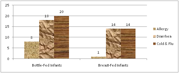 Figure 4 Comparison of frequency of infections, diarrhea and allergy among exclusively breast-fed and bottle-fed infants.