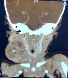 The development of multi-scanners with sub-millimeter sections and multi-planar reconstructions allows a better study of fleshy and fatty tissue components and in particular calcifications which are poorly explored in MRI.9 The scanner also allows a detailed study of the relationships, particularly with the jugulo-carotid vascular axis, as well as an objective assessment of the impact on the aerodigestive system.10 This examination carried out for our patient provided all the information necessary for safe surgery.