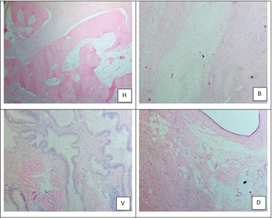 A: bone tissue; B: cartilaginous tissue; C: respiratory type covering; D: fibroadipose tissue.