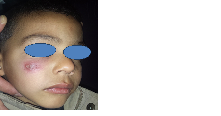 Cutaneous leishmaniasis (CL) is an infectious disease making a real public health problem in some countries such as Morocco. Leishmania major has a high incidence rate in all North Africa countries where it is considered as a public health threat. Zoonotic CL (ZCL) is distributed in the arid and Saharan bioclimatic stages where it follows an epidemic pattern with seasonal occurrence of cases. Zoonotic CL incidence and the interval between epidemics depend on climatic factors.1 The purpose of our work was to determine the particularities of child's CL.
