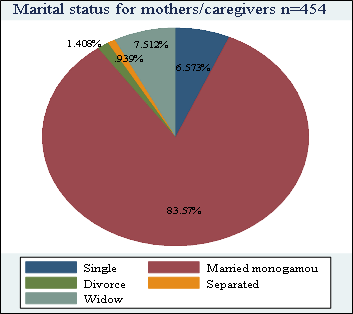 Socio-demographic factors of mothers/caregivers in the study area