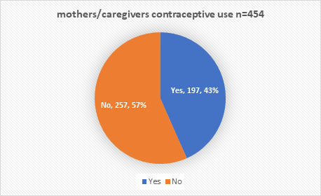 Methods: This was a cross-sectional descriptive study. The study used mixed methods, both quantitative and qualitative. A structured questionnaire was used to collect data on social demographic and social cultural factors, maternal health care utilization and knowledge. Key informative Interviews and Focus Group Discussions were used to collect qualitative data on 454 mothers/caretakers with children aged between 12-23 months reached in Narok South sub county.
