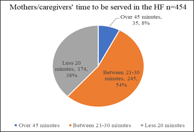 Majority of mothers/caregivers as per the graph above (figure 26), 245 (54%) indicated that, it takes between 21 to 30 minutes to be served in a given health facility, followed by less than 20 minutes 174(38%) and the least 35 (8%) was over 45 minutes to be served in the facility. In regards of number of vaccinations that the child should receive, majority of mothers/caregivers did not know the number of times a child can be immunized, followed by one-time vaccination and the least was three times. The Pearson chi test (χ2= 14.8209. df=2 and p value=0.01), implied that, there was association between time to be served by health care worker with fully immunized children (Table 5). As publicized in Table 5 above, the multivariate logistic regression analysis was done to test the association between fully immunized children and predictors for non-immunization. As a result, the following factors were associated to low immunization coverage in Narok South sub county were as follows; education level (p value=0.02, O.R=1.38) , place of delivery (p value=0.00, O.R=0.26), size of the family (p value=0.86, O.R=1.04), source of income (p value=0.01, O.R=0.69) , Source of the immunization information (p value=0.02, O.R=0.75), distance to the health facility (p value=0.02, O.R=1.38) . Children who are born at the health facility are four times likely to be fully immunized as compared to those born at home. Further, mothers who attended at least one ANC visit are three times likely to be fully immunized. Further, mothers/caregiver’s education status, ANC visits, poor knowledge on immunization, size of the family, distance to the facility and place of delivery were forecasters of fully immunized children in the study area.