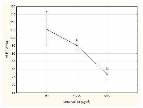Figure 3 Effect of mid upper arm circumference on mean maternal serum alpha-fetoprotein levels