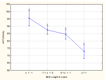 Figure 5 Association between Z-scores of birth weight and mean maternal serum alpha-fetoprotein levels