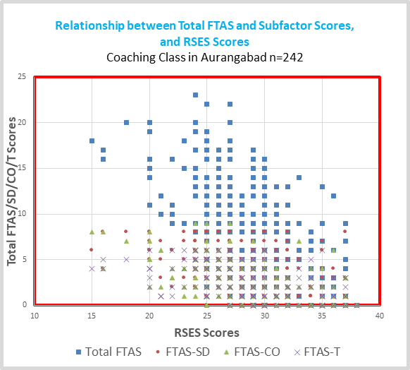 Figure 7 Relationship between total FTAS and sub factor scores, and RSES scores coaching class in Aurangabad n=242.