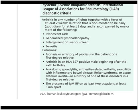 Keywords: systemic onset JIA, juvenile idiopathic arthritis, salmon colored rash, polyarthritis, autoimmune, remitting fever