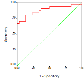 Analysis of the dataset was done by SPSS (statistical program for social science version 12). Description of quantitative variables is expressed as mean, standard deviation (SD) and range. Description of qualitative variables is expressed as number and percentage. ROC (receiver operator characteristic curve) was used to assess the best cut off and validity of certain variables. P values < 0.05 will be considered significant.