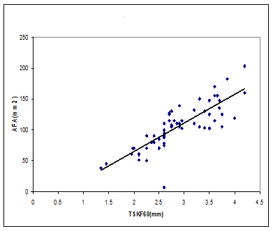 Figure 2 Scattergram and Regression of AFA and TSKF60. Some points are superimposed.