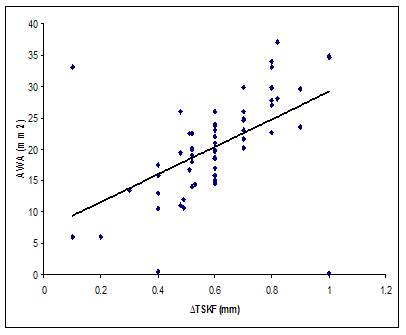 Figure 3 Scattergram and Regression of AWA and ∆TSKF. Some points are superimposed.