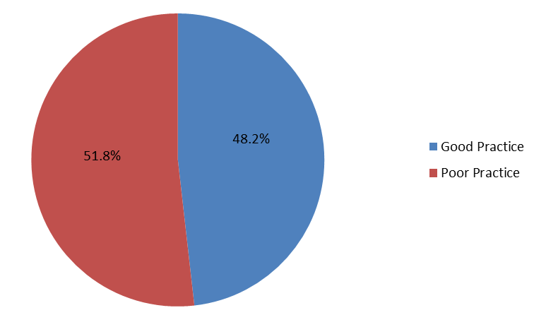 Interviewer administered a structured questionnaire by reviewing different researches was used to collect data on maternal socio-demographic characteristics, breast feeding practice, duration, frequency, and related areas. Good practice of breast feeding was asserted when the mother responded more than satisfactory to 10 of the 12 questions used to assess breast feeding practice.35-43