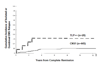 Figure 2 Cumulative incidence of an Isolated or combined CNS relapse for children with CNS1 status and TLP++ status.