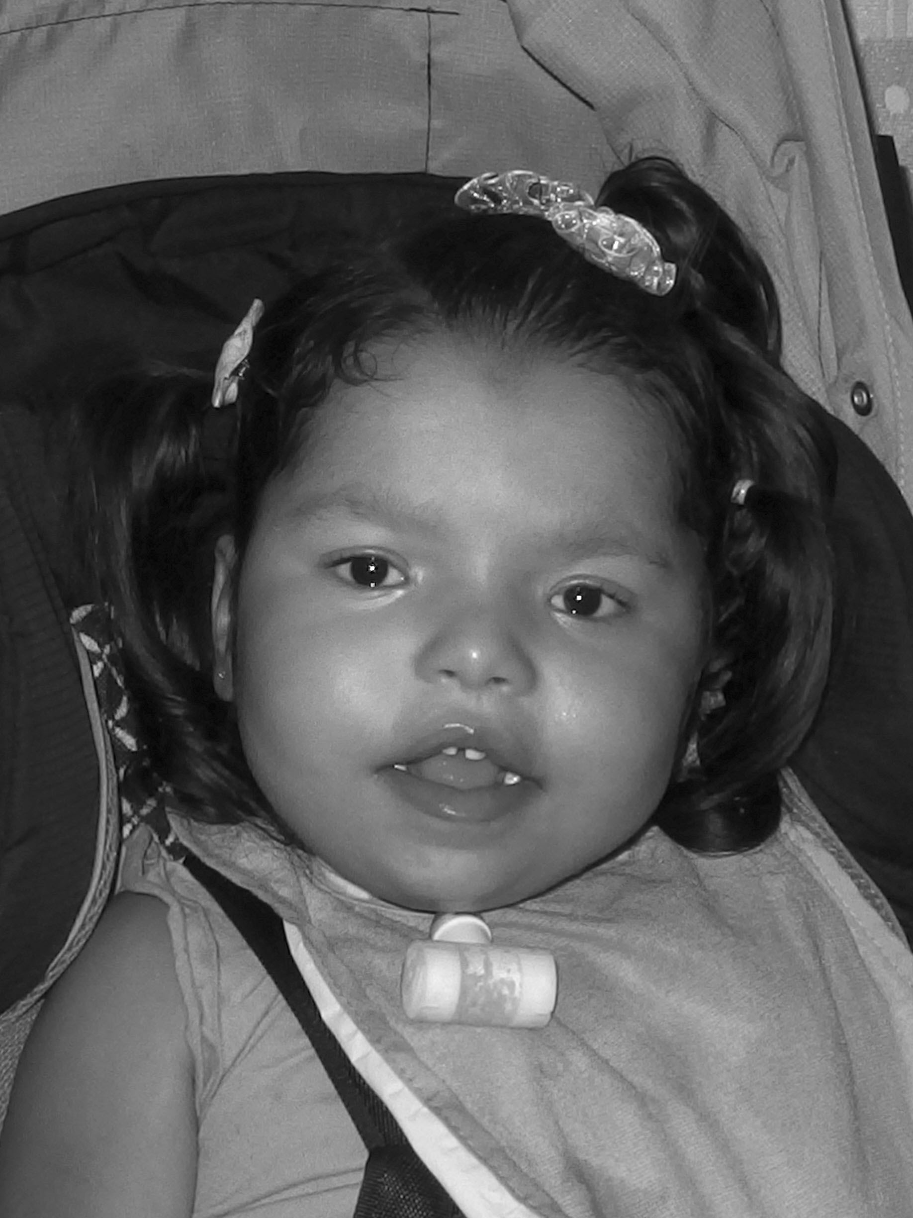 Following stabilization of medical issues, she returned for follow-up at 9 months of age without additional medical concerns and with developmental progress: she could hold her head up independently, sit with support, reach for objects and make noises. Additional dysmorphic features were noted including midface retrusion, broad forehead, hypertelorism, low-set ears, low nasal bridge with hypoplastic alae nasi, single palmar creases, brachydactyly, nystagmus and hypotonia (Figure 3). At 4 years of age, she had severe global delays, with more significant gross motor delays (Figure 4). She developed contractures of elbows and knees most likely related to increased appendicular tone. She did not eat and required gastrostomy tube feeds. Institutional review board at the Cincinnati Children’s Hospital Medical Center reviewed and approved the study.