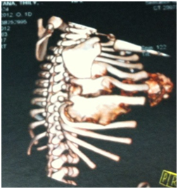 Figure 3b Is seen that the lesion concern at 5th, 6th and 7th right ribs. Scapula and the rest of the ribs aren’t affected.