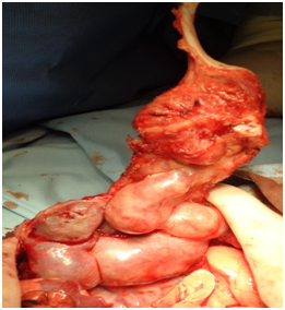 Figure 4b Intraoperative view of the lesion. Note that the affected tissues are solid and capsulated.